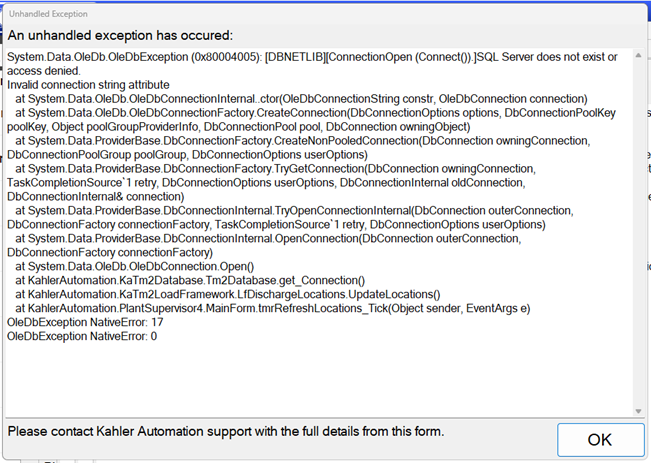 Depending on the specific error, restarting all Kahler applications and/or the computer may resolve the issue.
