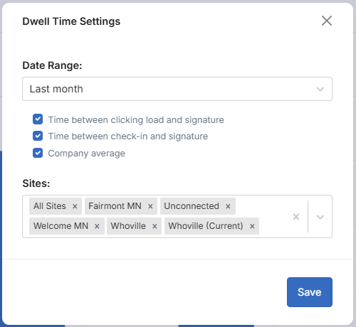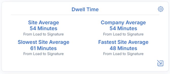 The Dwell Time dashboard widget in Constellation gives a look at how long drivers are on site, from their first interaction to their last. This allows companies to know how well their sites are performing, from a company average to what the dwell time is for their fastest (or slowest) site.