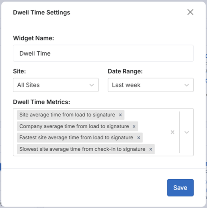 Each Dwell Time widget can be set to look at all sites or a single site for the last week, month, quarter, or year to date.