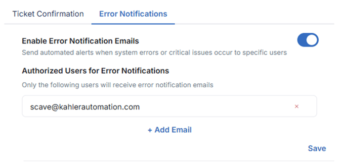 When enabled, sends automated alerts when system errors or critical issues occur to a specific list of users.