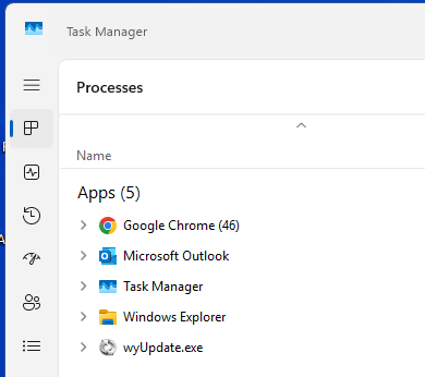 After ending any instances of the "wyUpdate" app/process, try updating the software again.