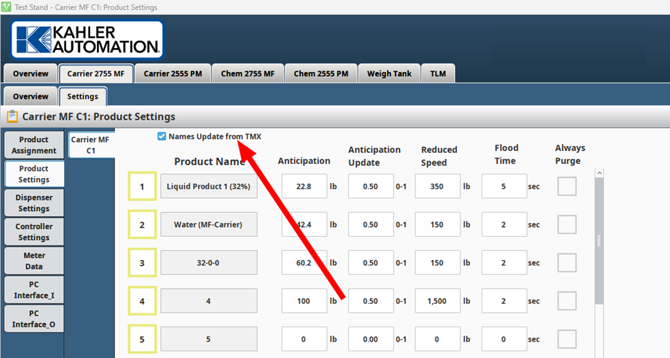 Names are synced only when the connected application starts, so changes to product setup should include restarting Plant Supervisor PSX, Self Serve 2, or Bulk Receiving 2.
