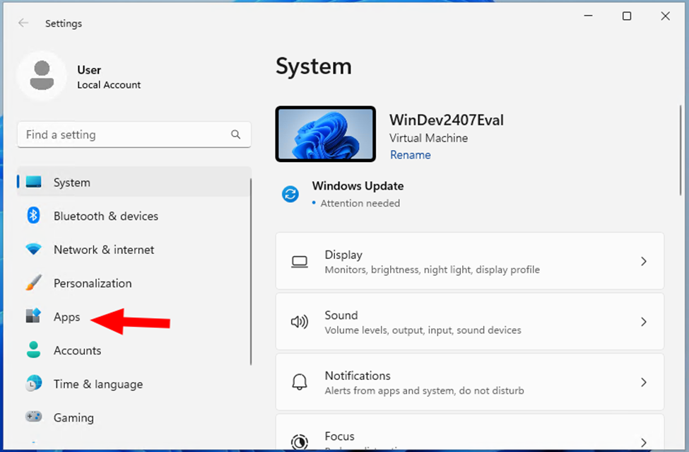 - Click the “Apps” link.