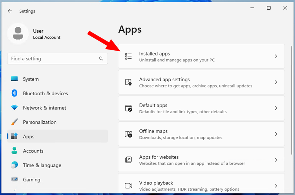 - Click the “Installed apps” link.
