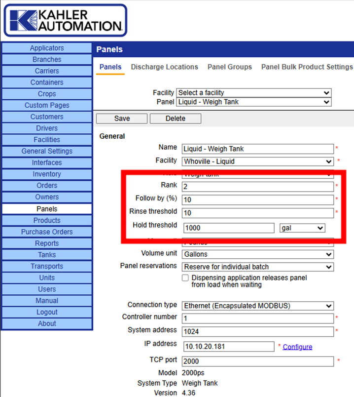 Rank: Sets the relative order of panels and informs the other settings described here; do not change. In the example above, Rank 2 tells the system that this panel should follow the Carrier, which is Rank 1.