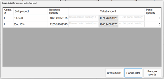 Use Panel Quantity: Use the last value from the Controller/Panel when creating the ticket. This value may be zero if the controller was restarted or “Handle later” was previously clicked.